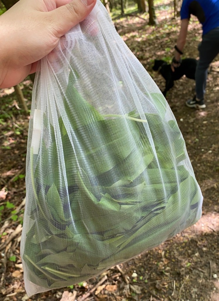 Ever since I was a young girl I have wanted to try a recipe using wild garlic, and so when I found a section of our local woodland blanketed in the smooth green leaves, I grabbed a bag and went foraging. When foraging wild garlic it is important to take leaves from different patches, don’t leave one patch bare. Do NOT pull up the bulbs of the plant, this is illegal, instead just break the leaves off at the base of their stem.